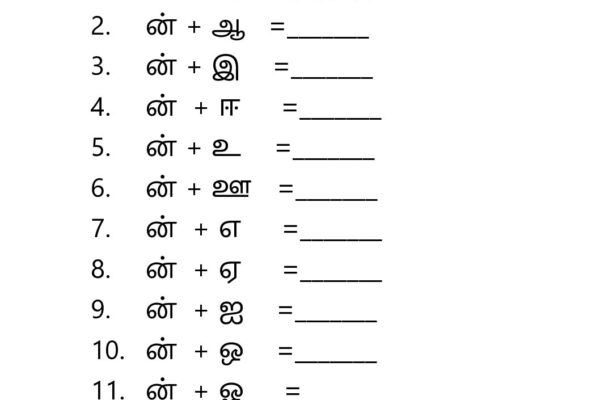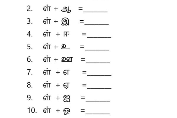 உயிர் மெய் எழுத்துகள் – ன வரிசை $0.00 Price tryworksheets Author December 26, 2023 Publish Date 524 Download Count More Details