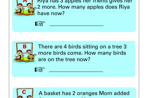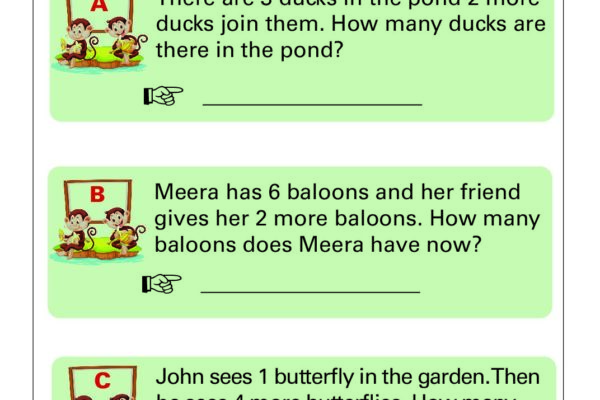 Math Grade 1 – Addition Word Problem Worksheets for Kids