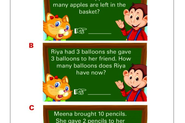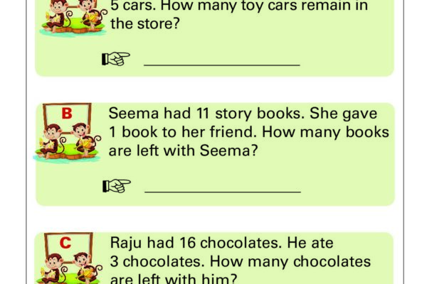 Math Grade 1 – Subtraction Word Problem Worksheets for Kids