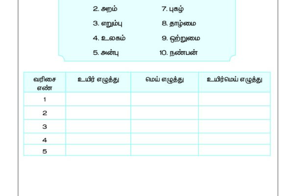 Tamil – Grade 2 Worksheet – Mei Eluthu – Uyir Eluthu – Sorting