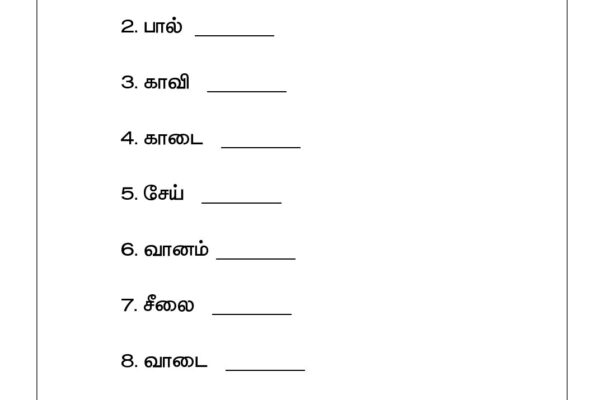 Tamil – Grade 2 Worksheet – Look at the Picture and Write the Name $0.00 Price tryworksheets Author August 28, 2025 Publish Date 23 Download Count More Details