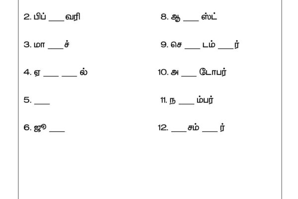 Tamil – Grade 2 Worksheet – English Months – Fill the Missing Letters