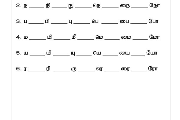 Tamil Grade 2 Missing Letters Worksheet | Uyir Mei Eluthukal Part 2 $0.00 Price tryworksheets Author October 19, 2025 Publish Date 8 Download Count More Details