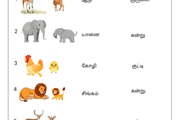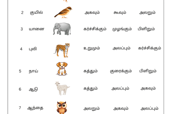 Vilangugalin Ilamaippeyar Marabu Sorkal – Tamil Worksheet for Kids