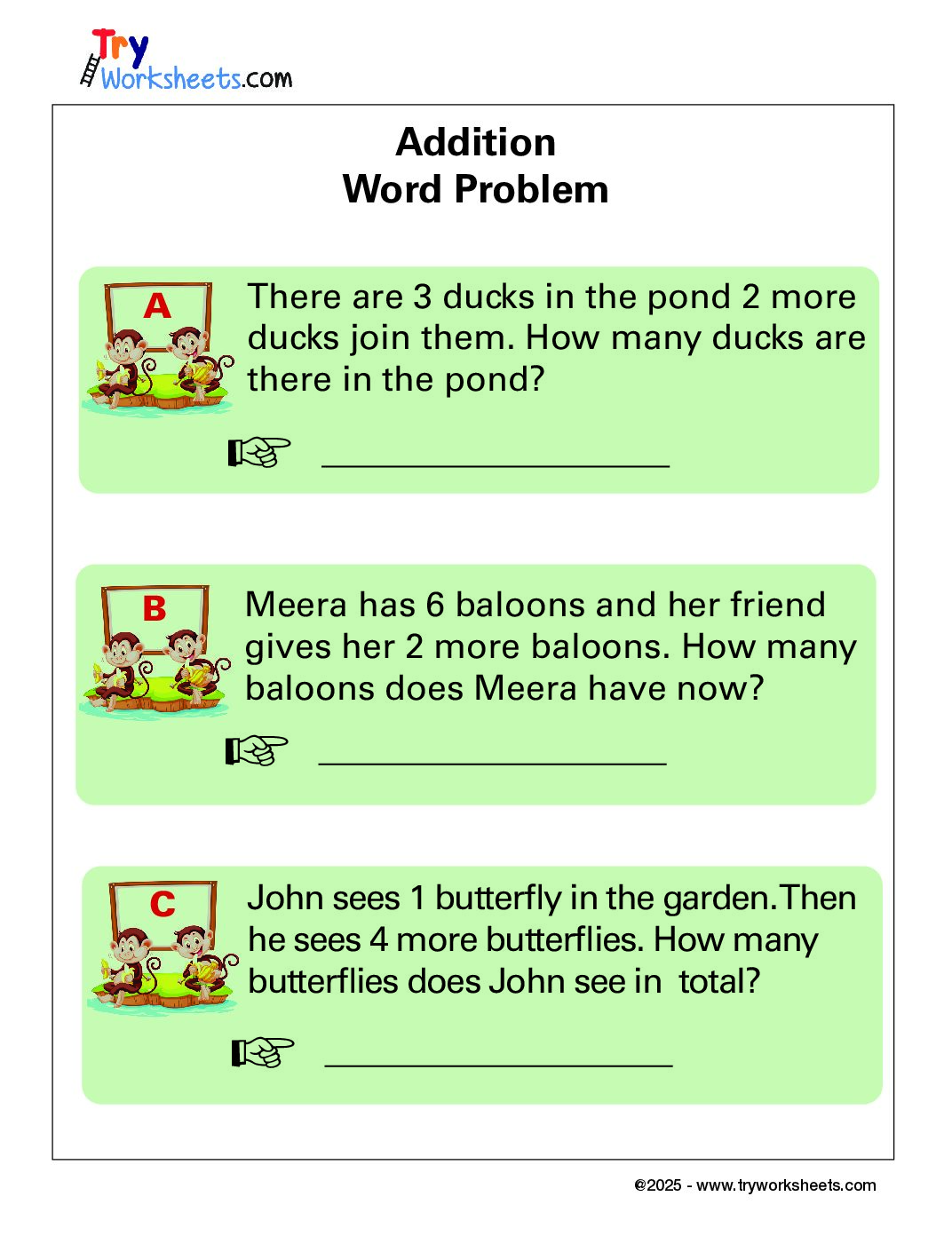 Math Grade 1 – Addition Word Problem Worksheets for Kids