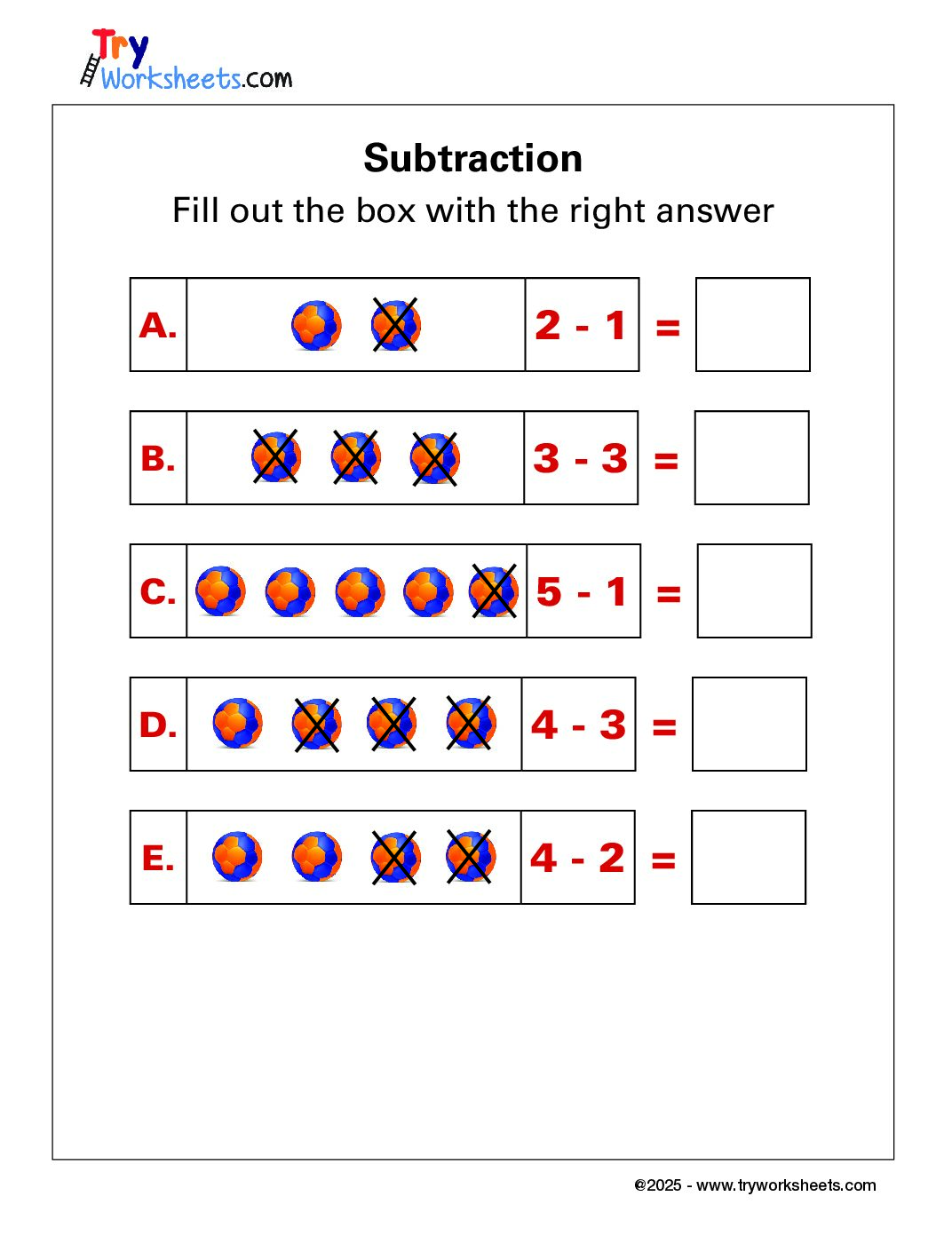 Math Grade 1 – Subtraction Worksheet with Fill-in Answers